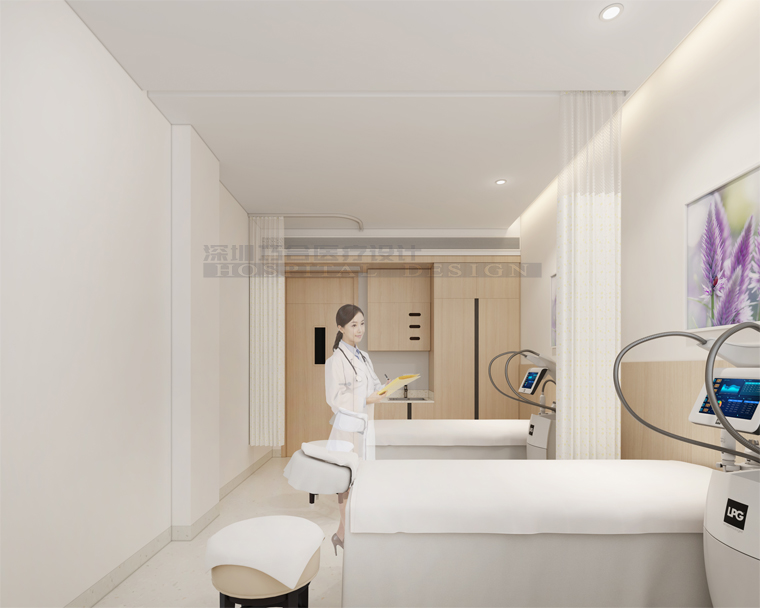 皮膚中心裝修設(shè)計(jì)結(jié)合全院智能化管理,在各公共區(qū)域設(shè)置各類設(shè)施點(diǎn)位。等候區(qū)按照一、二次等候設(shè)置,最大優(yōu)化等候效率,提升醫(yī)護(hù)效率及患者體驗(yàn)。