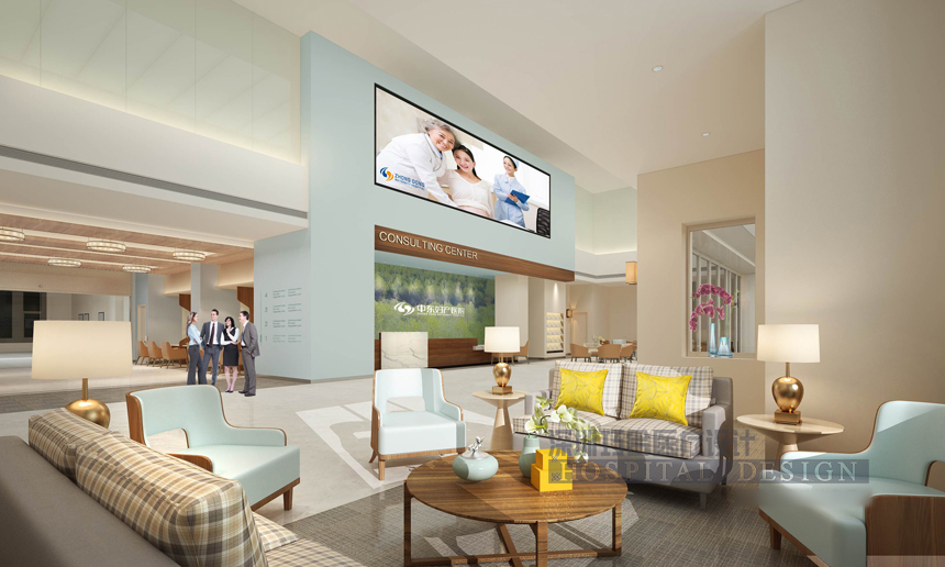 醫(yī)院復(fù)雜的平面功能形態(tài),常常導(dǎo)致采光空間零散的問題。所以,本案中的醫(yī)院門診空間設(shè)計,采用了柔和的空間色調(diào),來提高空間明度及強調(diào)溫馨感。