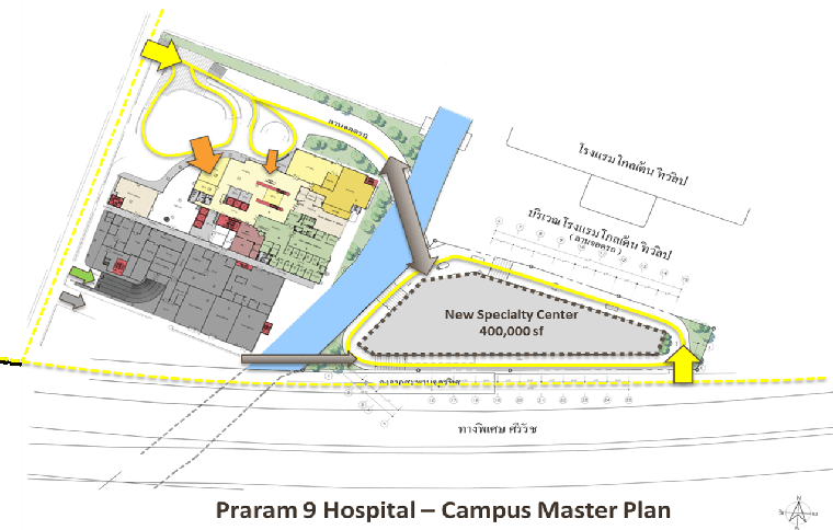 △ 圖右三角形地塊為Praram 9 Hospital新的醫(yī)療中心
