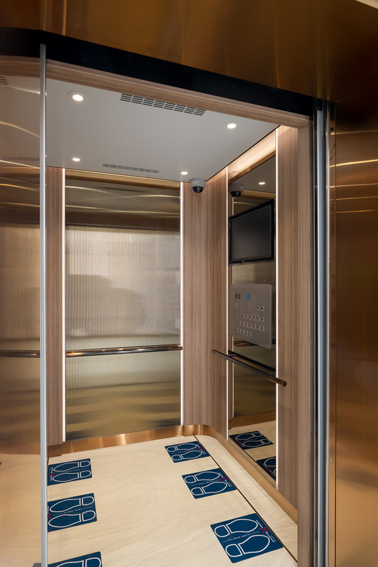 就好像電梯廳墻面的掛畫,用東方意蘊平衡了空間堅硬質(zhì)感。而進入電梯廳內(nèi),基于疫情防控的細節(jié)設計又展現(xiàn)出醫(yī)療專業(yè)。