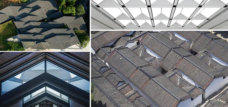 中庭的采光頂借鑒了傳統(tǒng)建筑式樣,但功能考量著眼于當(dāng)下及可持續(xù):限制標(biāo)高以不影響建筑層次;電動(dòng)天幕遮陽簾智能控溫且節(jié)能環(huán)保。