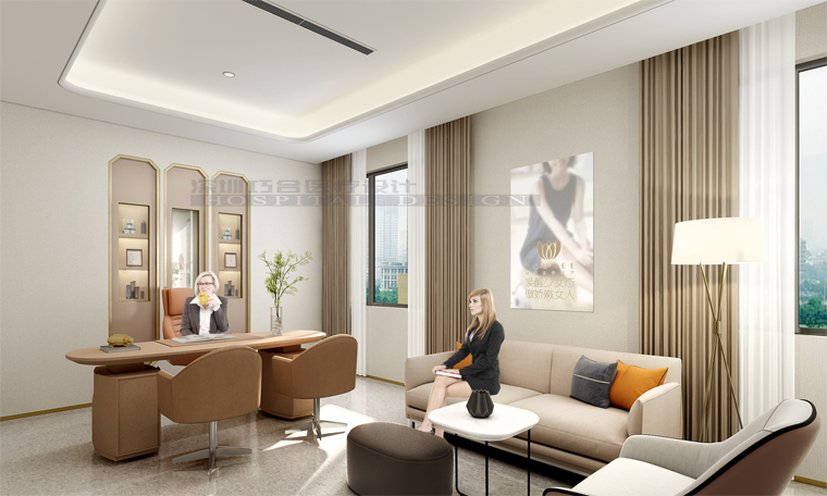 設(shè)計(jì)方案的第一步,是確定空間色調(diào)方案。將駝色作為背景色,用來凸顯空間的寧靜氛圍,而后加入雅金和粉灰點(diǎn)亮空間層次,以此來表達(dá)優(yōu)雅和年輕態(tài)。對(duì)女性群體來說,應(yīng)該很難抗拒這種溫柔的力量感吧