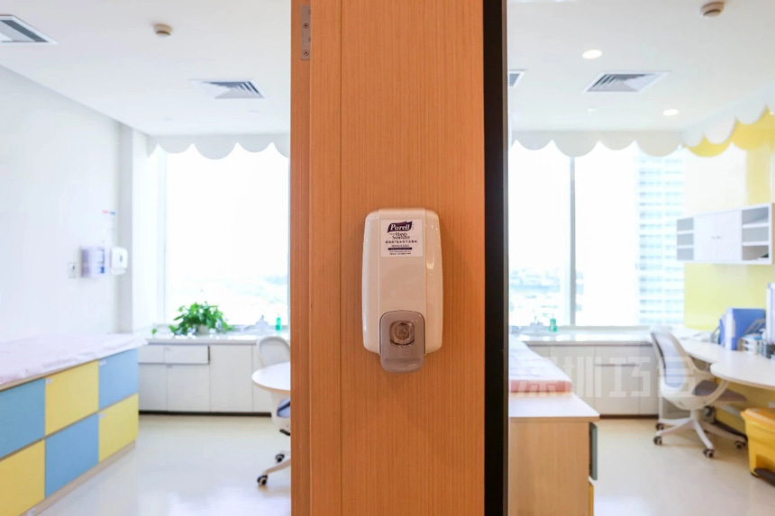 細節(jié)方面,診室門安裝了暖光燈,不單營造出空間意趣,還能避免患者串診。另外,診室門把手的高度進行了上調,防止孩子在看診時頻繁走動導致的意外碰傷。