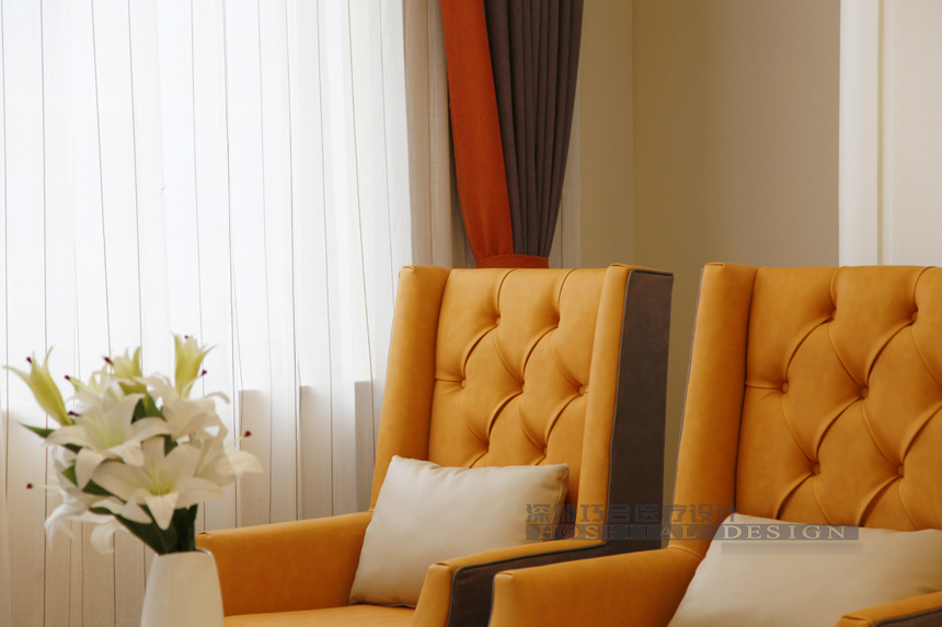 門診等候區(qū)的愛馬仕橙色沙發(fā),低調(diào)地蝸居在一角,高調(diào)地消除“醫(yī)院就是冷冰冰”的刻板印象,讓人想癱到地老天荒。