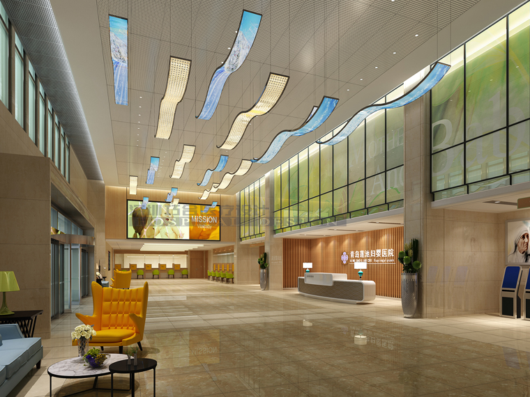 醫(yī)院整體運(yùn)用海濱城市特有的碧海、藍(lán)天、陽光等大自然的元素和色彩烘托出輕松、浪漫溫馨的氛圍。