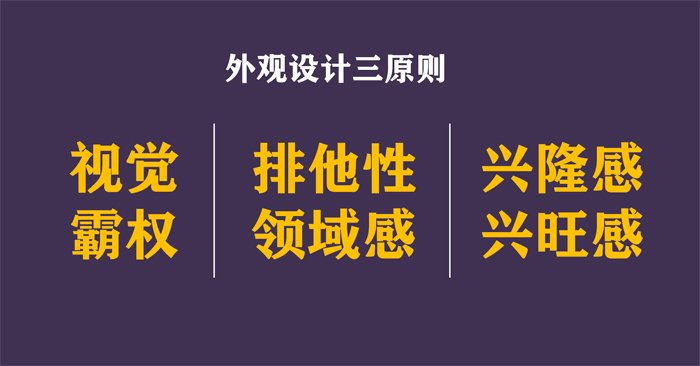 排他性,領(lǐng)域感建立:建筑外觀是品牌意志力的延伸,對(duì)外謀差異,對(duì)內(nèi)謀統(tǒng)一;
